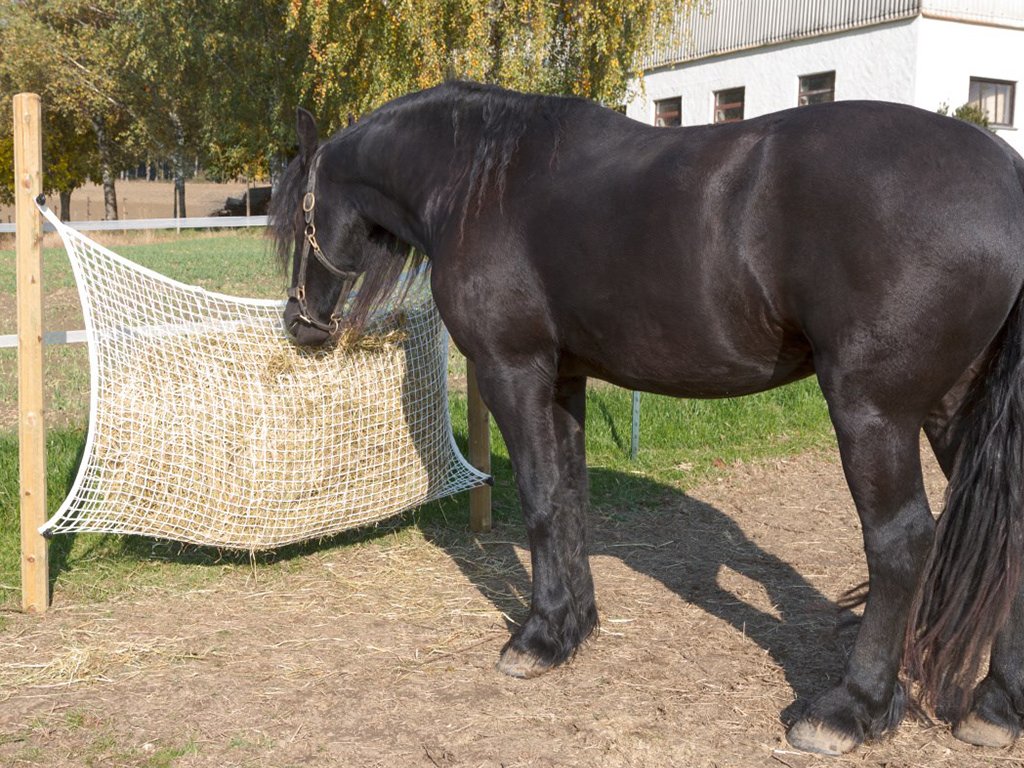 Síť na seno, velikost oka 3x3 cm, extra odolná proti roztržení, vhodná pro 24 hodinové krmení, podporuje správné krmení, až o 30% nižší plýtvání krmivem, kapacita 16 kg, rozměry 160x100 cm.