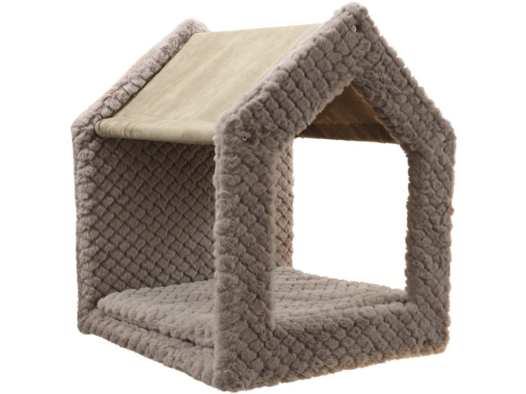 Všechny části škrabadla jsou vyrobené z kvalitního dřeva, potažené měkkým plyšem pro pohodlí při ležení a doplněné sisálovým kobercem pro přirozené broušení drápků. Robustní konstrukce zaručuje dlouhou životnost a stabilitu každého prvku.