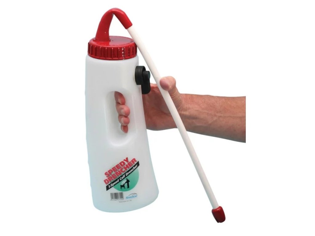 Drencher pro telata se sondou je speciální krmná láhev určená pro podávání mléka nebo kolostra novorozeným telatům. Krmná lahev pro telata je vybavena 3-cestným ventilem pro regulaci průtoku, ergonomickou obousměrnou rukojetí a flexibilní sondou o délce 48 cm, která umožňuje snadné a bezpečné podávání tekutin přímo do žaludku telete. Díky velkému šroubovacímu víku a širokému dnu, je láhev velmi stabilní a snadno se čistí.