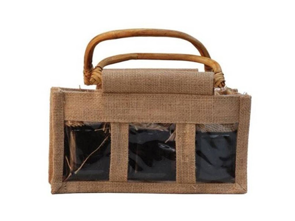 Taška na 3 sklenice 300-315 ml, světlá, výška 25 cm, šířka 25 cm Pro balení sklenic doporučujeme také etikety na malé sklenice, náš sortiment zahrnuje víčka na sklenice s různými poutavými vzory.