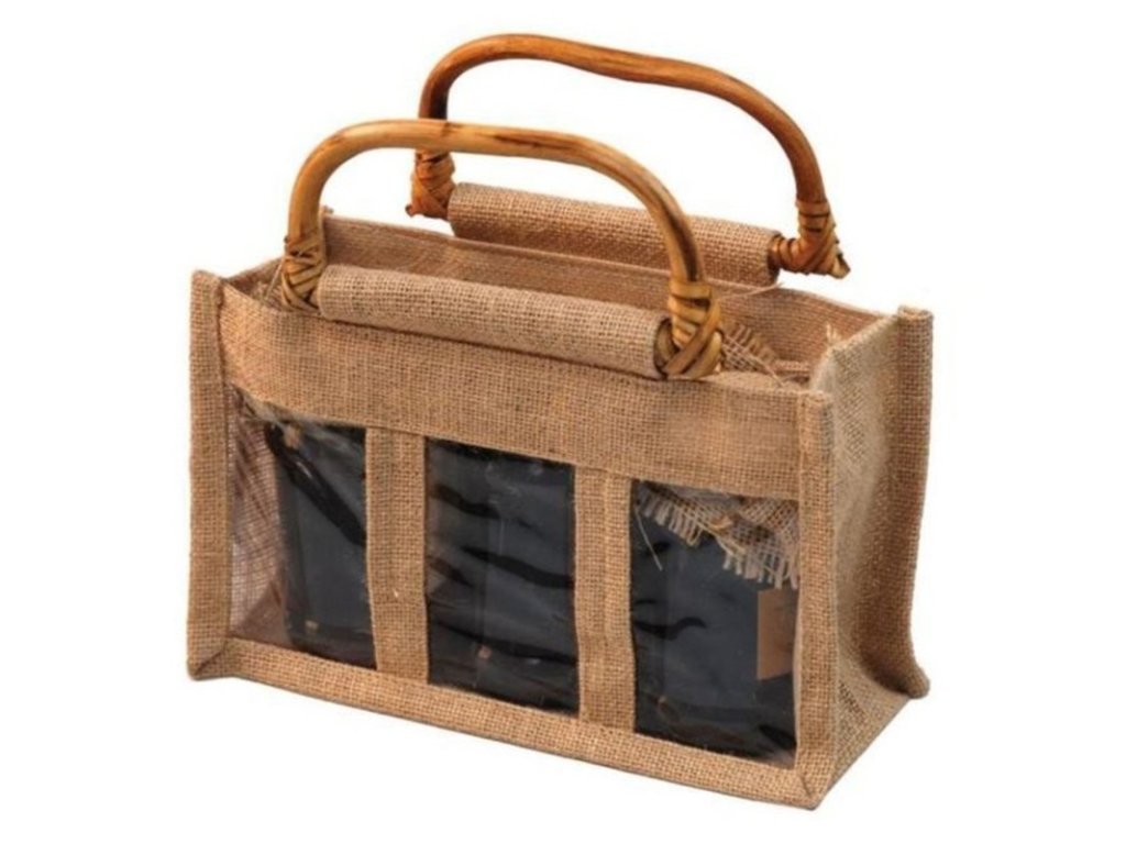 Taška na 3 sklenice 300-315 ml, tmavá, výška 25 cm, šířka 25 cm Pro balení sklenic doporučujeme také etikety na malé sklenice, náš sortiment zahrnuje víčka na sklenice s různými poutavými vzory.