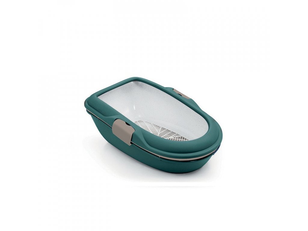 Praktická toaleta pro kočky s roštem, okrajem a dvojitým dnem k přesypávání steliva. Síto lze do záchodku připnout pomocí klipů, tím zamezíme pohybu síta a při odstraňování nečistot stačí pouze síto vyjmout prosít čistou podestýlku (která spadá zpět do vany) a vynesete jen exkrementy.
