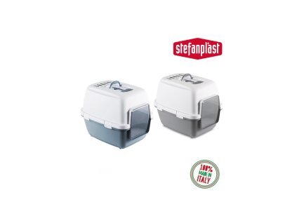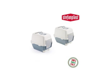 Toaleta pro kočky, krytá - kočičí WC Furba Top Chic, 39,4 x 58,4 x 42,7 cm, světlá holubí šedá/anglická zelená/bílá