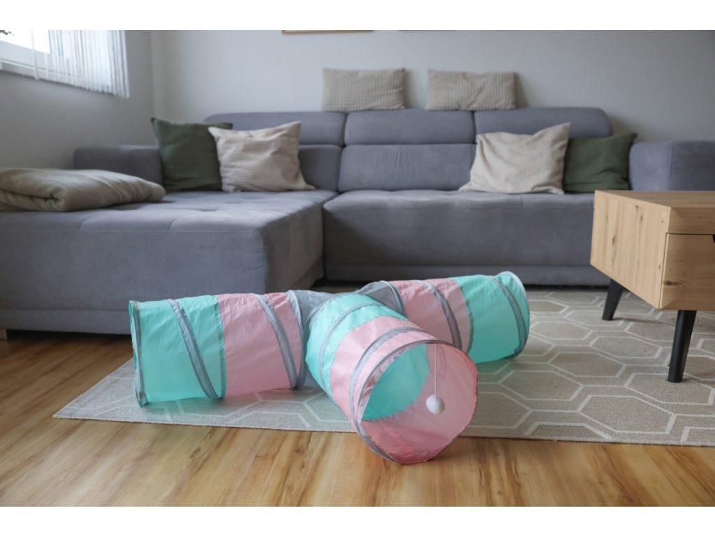 Elegantní tunel pro kočky není jen zábavou, ale i stylovým doplňkem vašeho interiéru. Díky svému minimalistickému designu se hodí do každého moderního bytu. Všité spirálové pružiny zajišťují tvar a možnost opětovného složení. Šustivý materiál tunelu podporuje přirozené lovecké instinkty a vybízí ke hře. Spojení funkčnosti a estetiky.