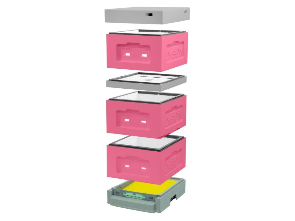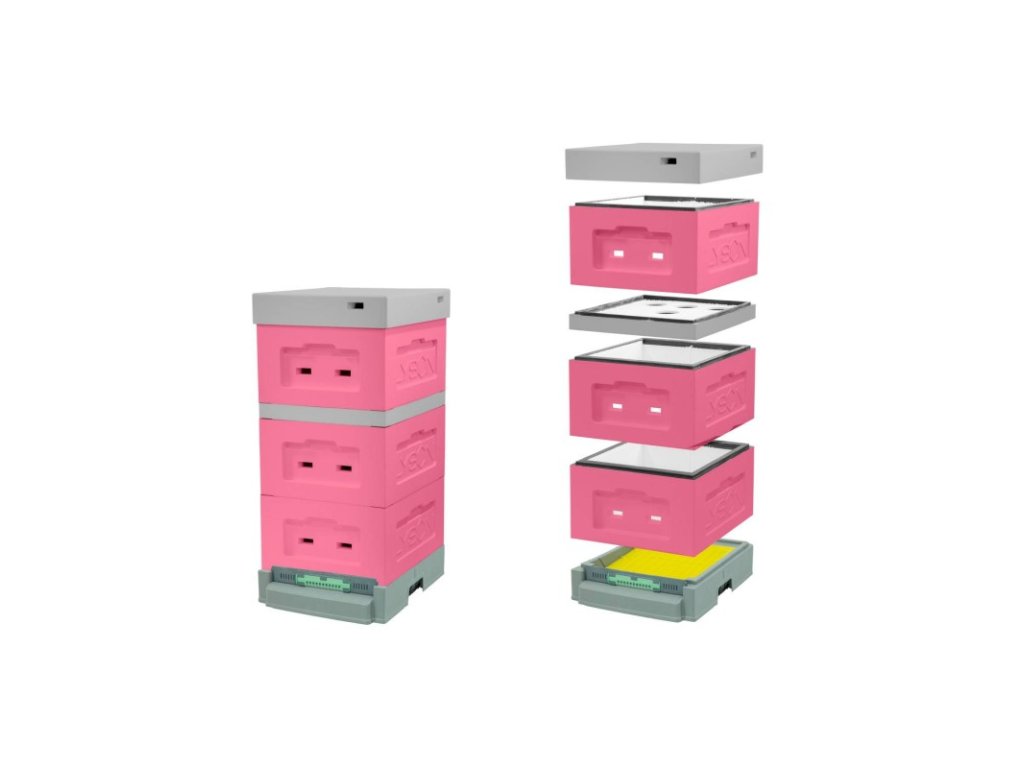 Moderní, odolný a snadno udržovatelný úl pro každodenní včelařskou praxi. Barevná kombinace růžová/šedá potěší nejen funkčností, ale i vzhledem. Plastové dno verze II zajišťuje hygienu a snadný přístup k podložce na spad.