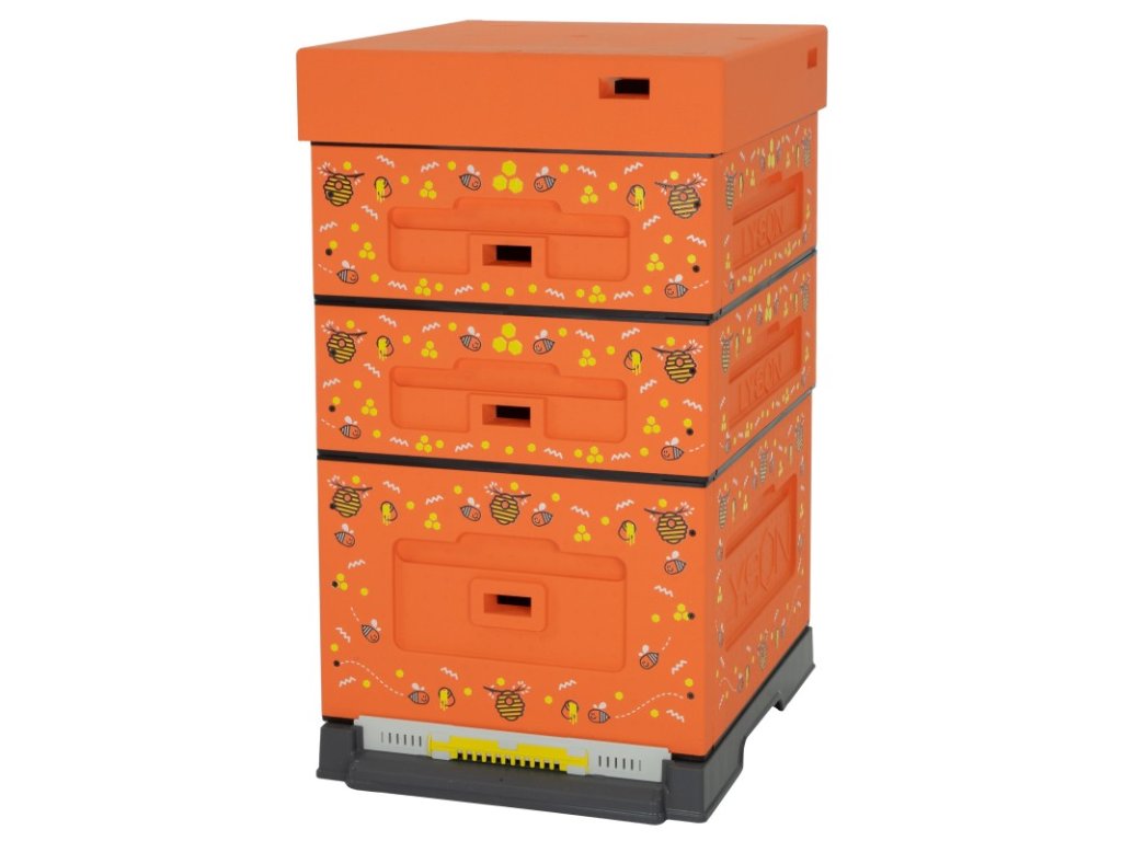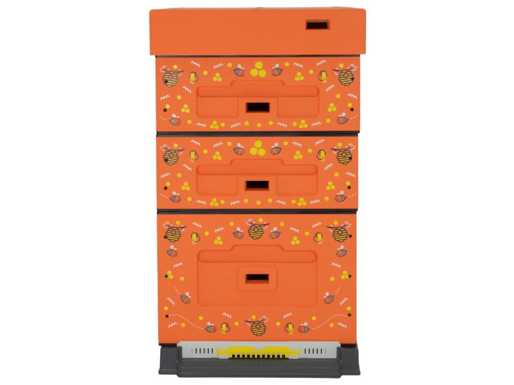 Úl Dadant OPTIMA, lakovaný (oranžový), potisk – včela, nekroucený