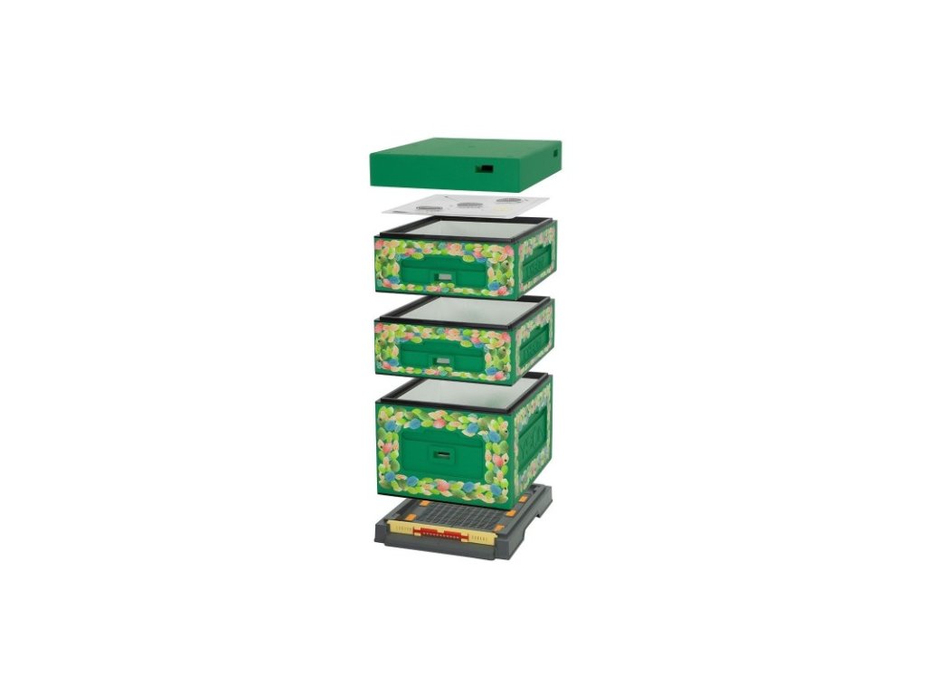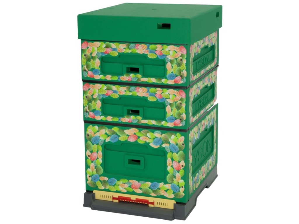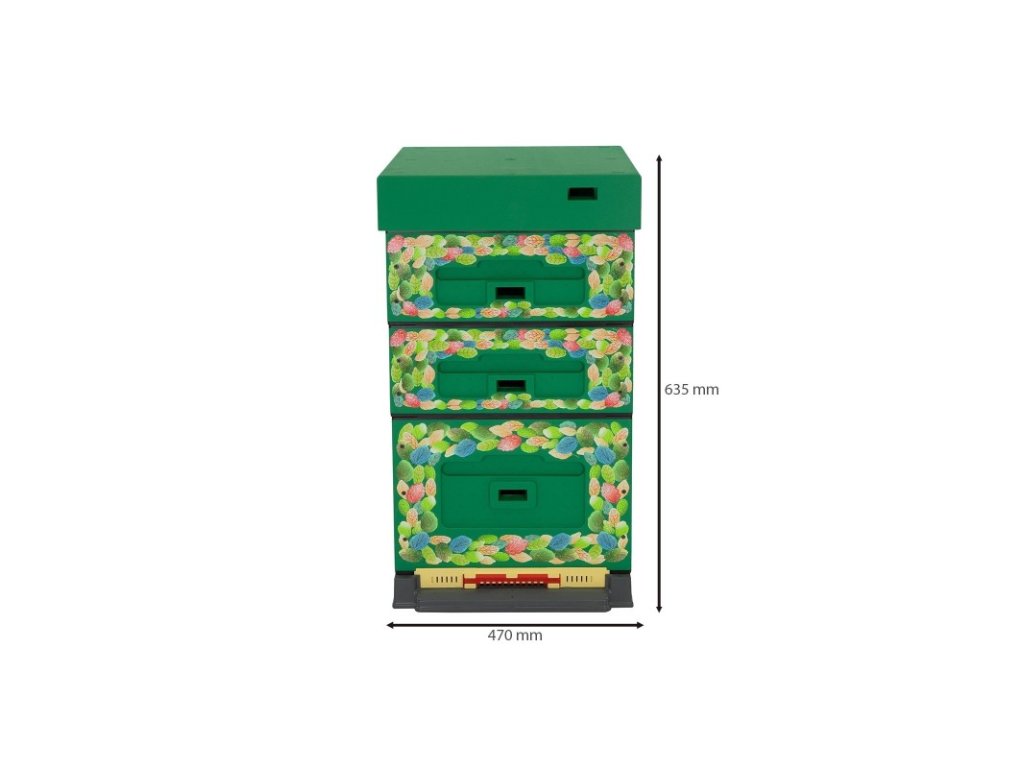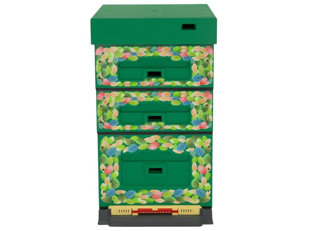 Úl Dadant OPTIMA, lakovaný (tmavě zelený), potisk – listy, nekroucený
