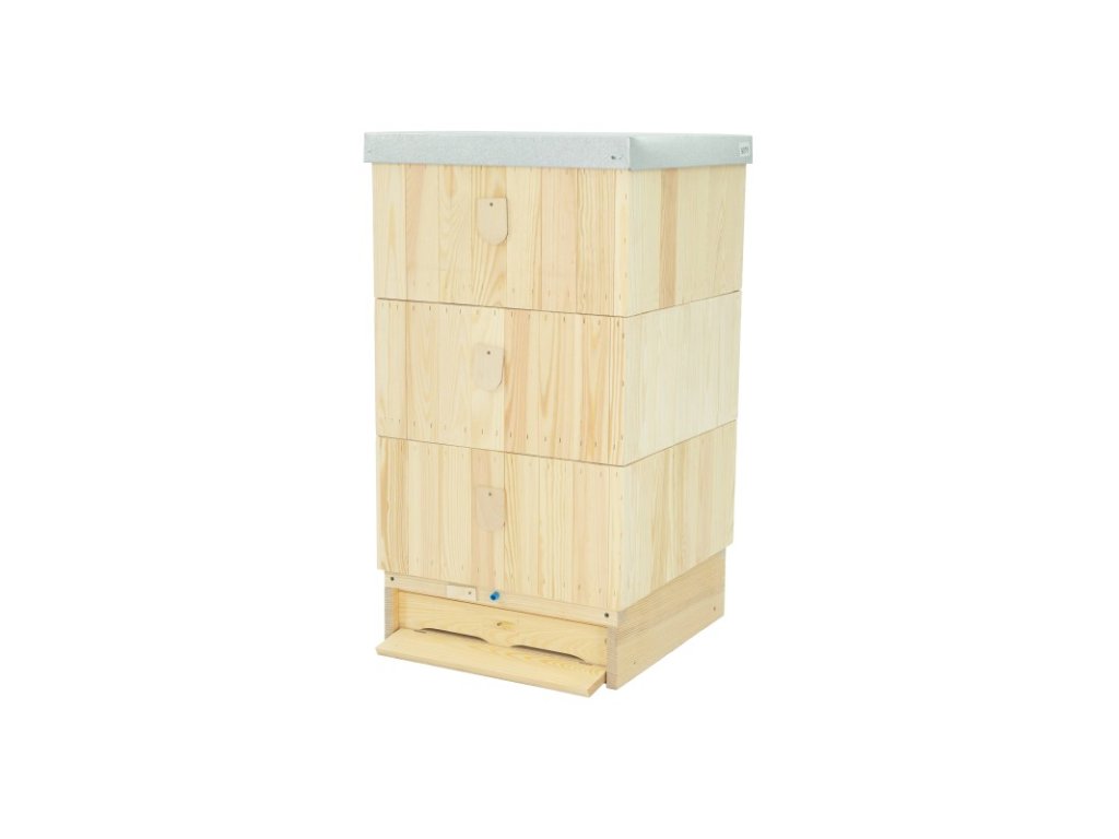 Kvalitní dřevěný úl s vnitřní izolací o tloušťce 2,5 cm z polystyrenu pro celoroční použití. Vysoké dno je vybaveno integrovaným pylochytem, který usnadňuje sběr pylu bez rušení včelstva. Tento typ úlu je ideální volbou pro pokročilé včelaře, kteří hledají efektivní řešení s důrazem na ochranu, hygienu a produktivitu.