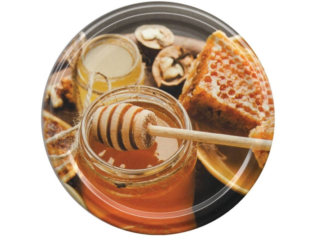 Velké víčka Ø82mm, šest záchytů. Balík (50 ks) Pro balení sklenic doporučujeme také etikety na malé sklenice, náš sortiment zahrnuje víčka na sklenice s různými poutavými vzory.