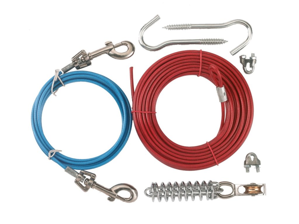 Kompletní sada pro uvázání psa na zahradě, dvoře nebo u chaty. Obsahuje 15 m dlouhé lanko a 3 m vodítko s bezpečnostní pojistkou, která chrání vašeho psa před poraněním při tahu. Ideální pro použití na otevřených prostranstvích bez plotu.