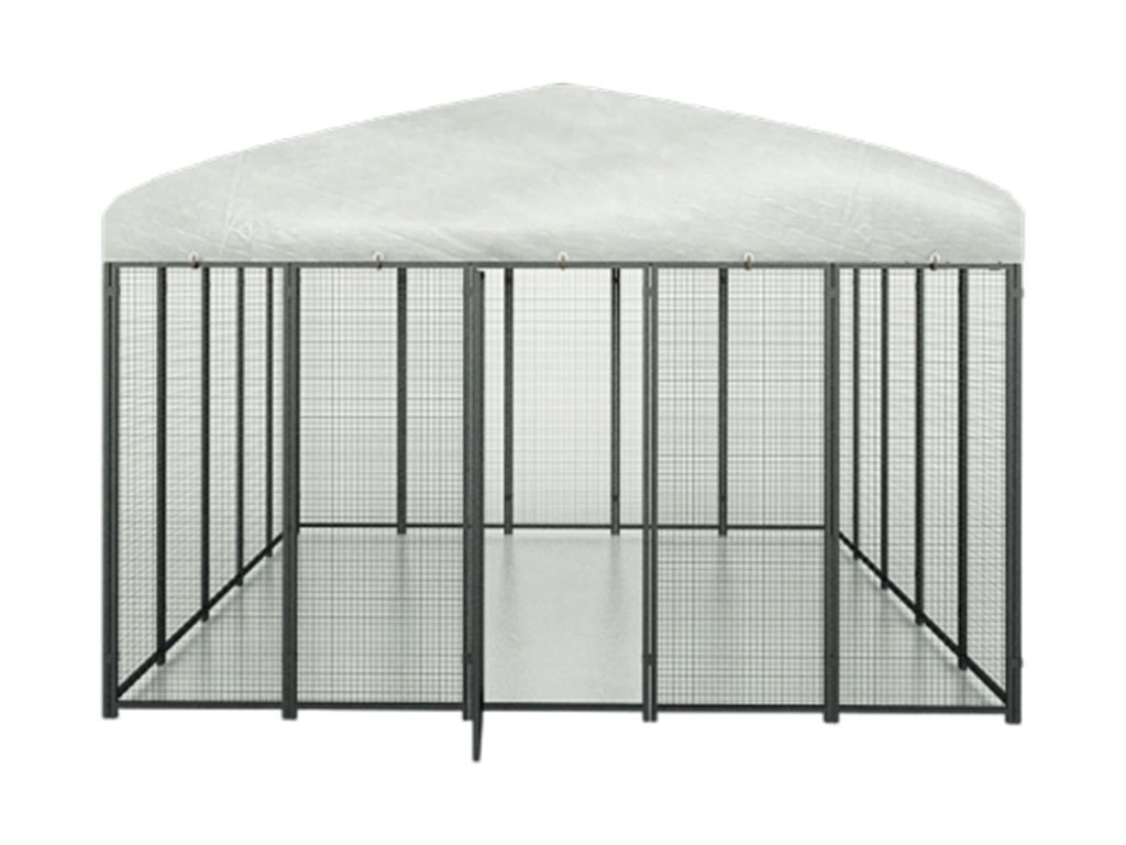 Výběh pro drůbež ocelový, modulární ohrada pro drůbež, kvalitní pletivo z uhlíkové oceli, velikost ok ohrady 2,5x2,5cm, trubková konstrukce ø25x0,8cm, ochranná plachta vůči okolním vlivům, rozměry 300x300x205cm.