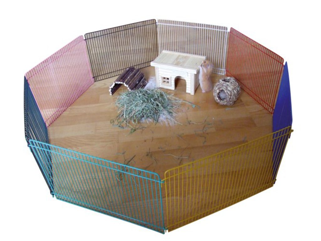 Výběh pro křečky a jiné hlodavce, osm stěn s rozměry 34 x 23 cm. Jedná se praktickou ohrádku vhodnou do vnitřních prostor pro bezpečný chov a odchov menších hlodavců. Ohrádku můžete snadno složit a zase rozložit, ohrádka je vyrobena z lakovaného kovu.