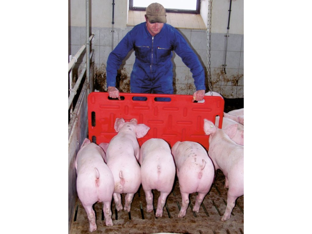 Zábrana dělící a naháněcí je praktická pomůcka určená pro šetrné řízení pohybu prasat při přesunech a manipulaci. Je vyrobena z odolného materiálu HDPE, který zaručuje dlouhou životnost, snadné čištění a odolnost vůči nárazům i vlhkosti.