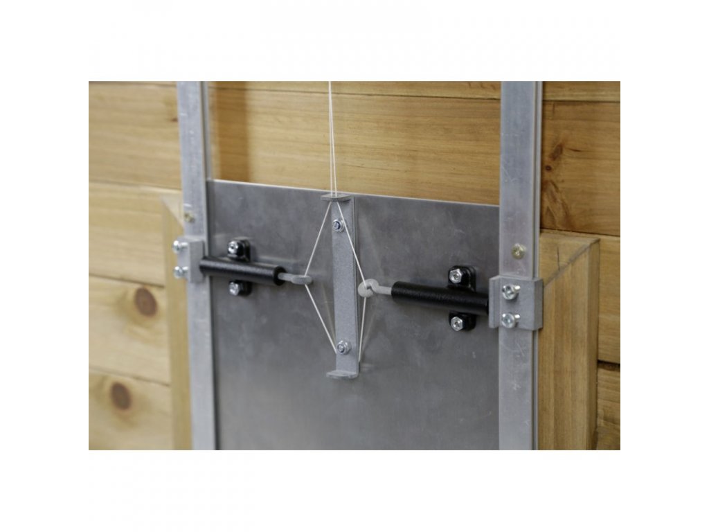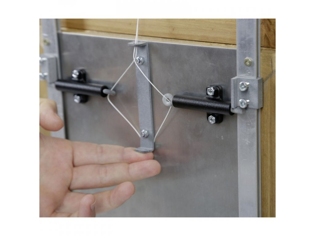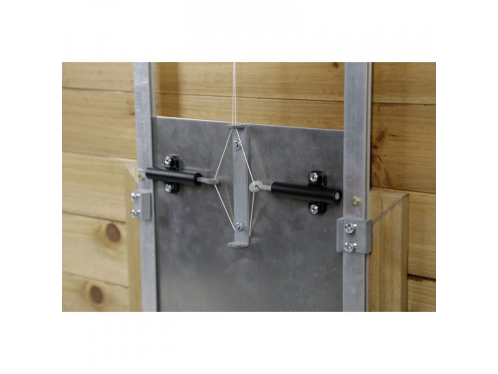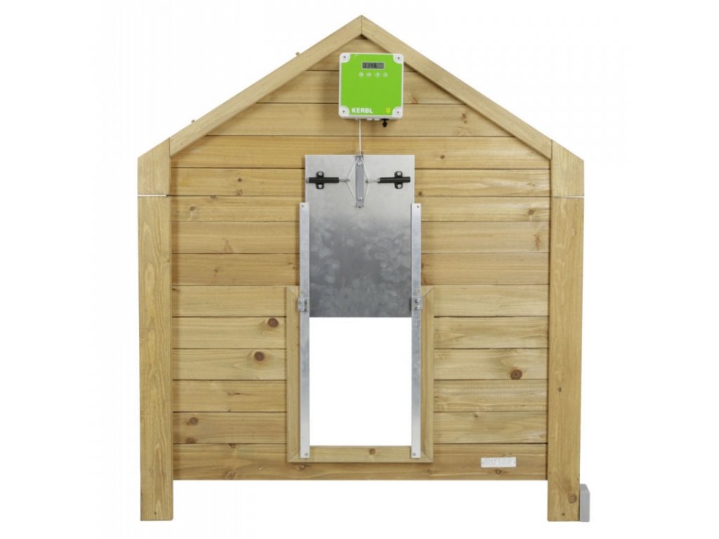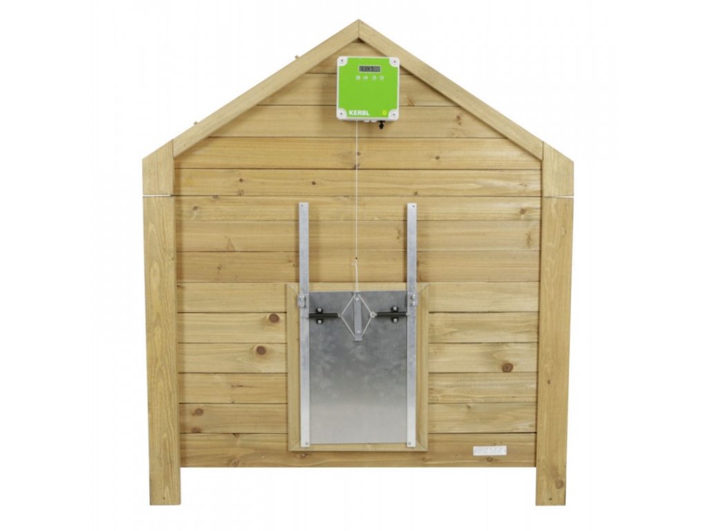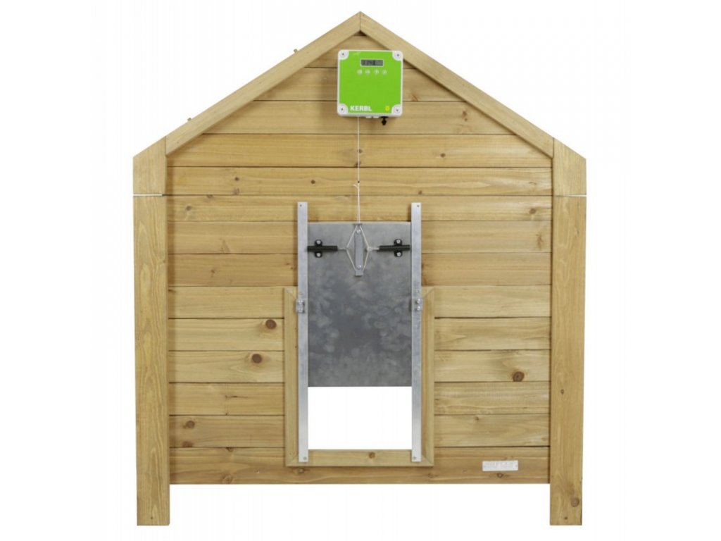 Praktický zámek KERBL je určen jako dodatečná ochrana pro automatická dvířka kurníku. Po manuálním nadzvednutí dvířek se provázek povolí a vyjedou západky, které díky zarážkám znemožní další nadzdvihnutí dvířek. Jakmile se dvířka otevřou, západky se automaticky uvolní.