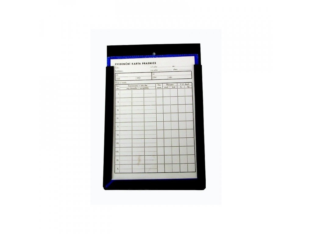 Plastový závěs je vyroben z černého plastu umožňujícího popis křídou. Tím se karta se závěsem stává daleko operativnější pro krátkodobé záznamy. Díky omyvatelnosti pouzdra zůstane karta i ve stájovém prostředí vždy čitelná, záznamy křídou na závěsu je možno mazat vlhkou houbičkou