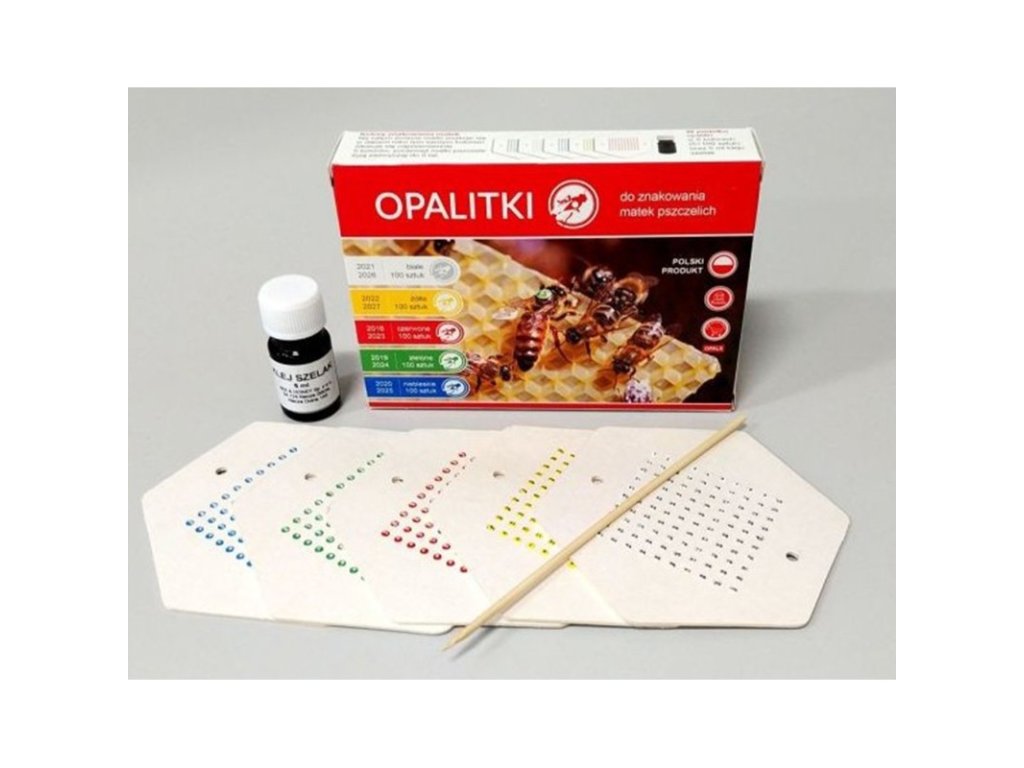 Opalitové značky jsou praktickým řešením pro značení včelích matek. Díky barevnému kódování podle mezinárodního systému umožňují snadnou identifikaci matek a přehled o jejich stáří. Každá sada obsahuje pět různých barev – jednu pro každý rok pětiletého cyklu.