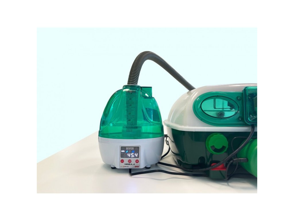Zvlhčovač vzduchu Nebula 2.0 pracující na principu ultrazvuku. Patentovaný systém tohoto ultrasonického zvlhčovače kontroluje vlhkost uvnitř líhně a následně udržuje její stálou hodnotu a tím ideální prostředí k líhnutí kuřat. Zvhlčovač vzduchu lze ovládat přímo přes líheň ET TOP a pomocí aplikace RIVER CovApp.